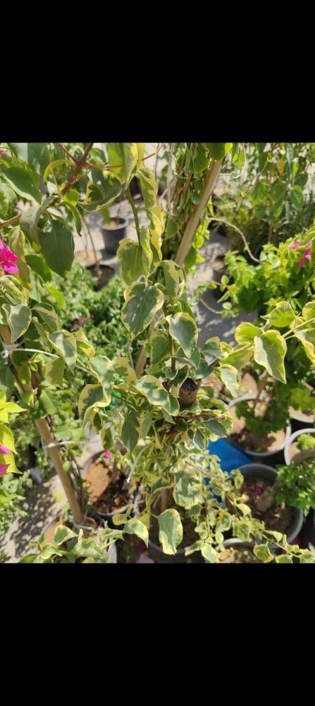 شجرة الجهنمية المبرقشة النادرة فوشي اوراق مبرقشة بالاصفر متبقي حبتان -Bougainvillea